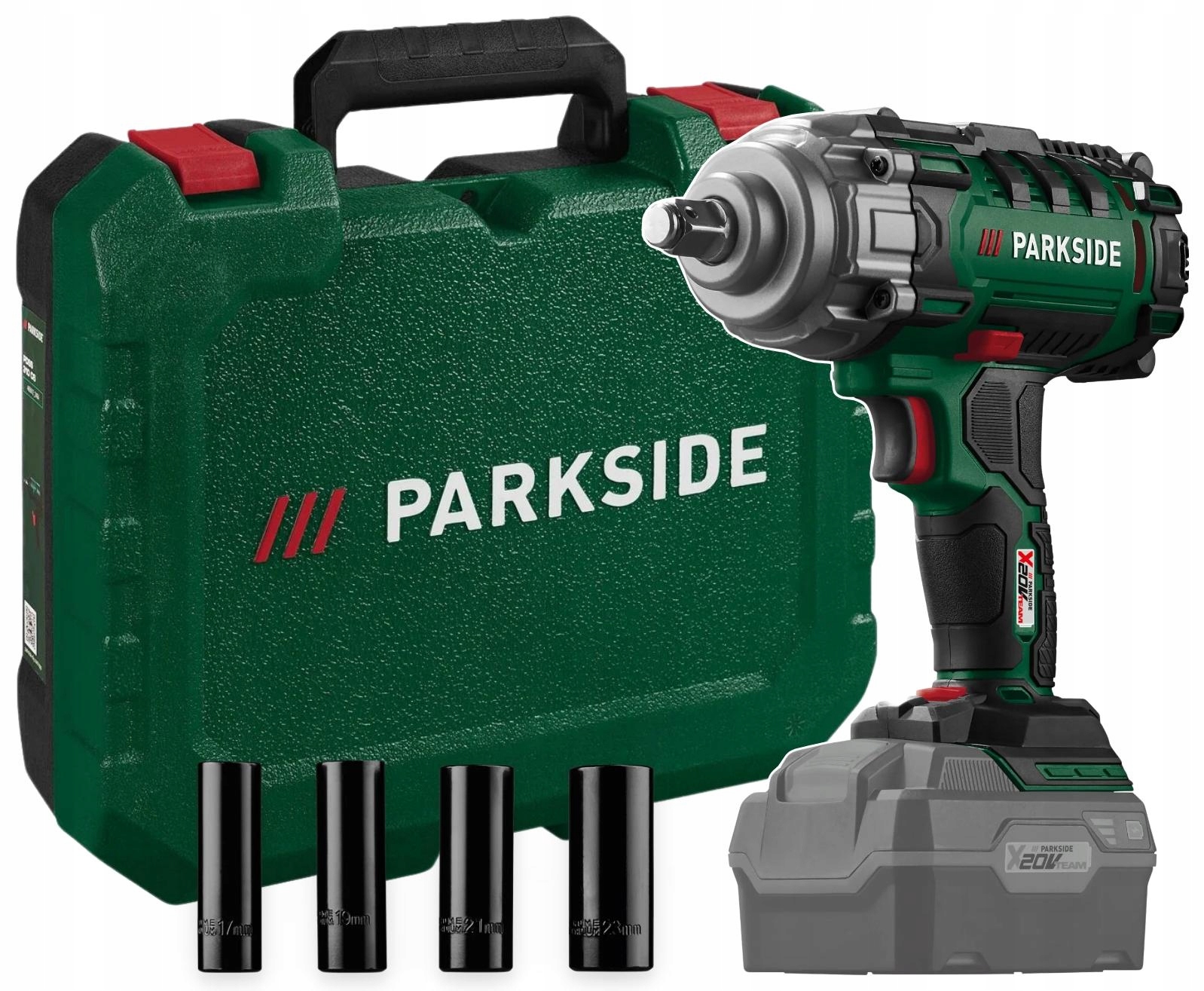 Akumulatorowy Klucz udarowy Parkside Passk 20-Li 20V 400Nm +Walizka Nasadki