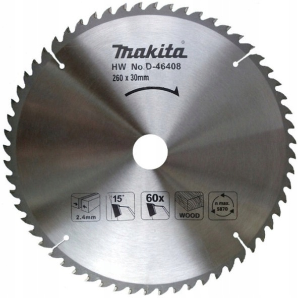 3. Makita Piła tarcza do cięcia drewna Hm 260x30 mm 60 Zębów MLT100 D-46408
