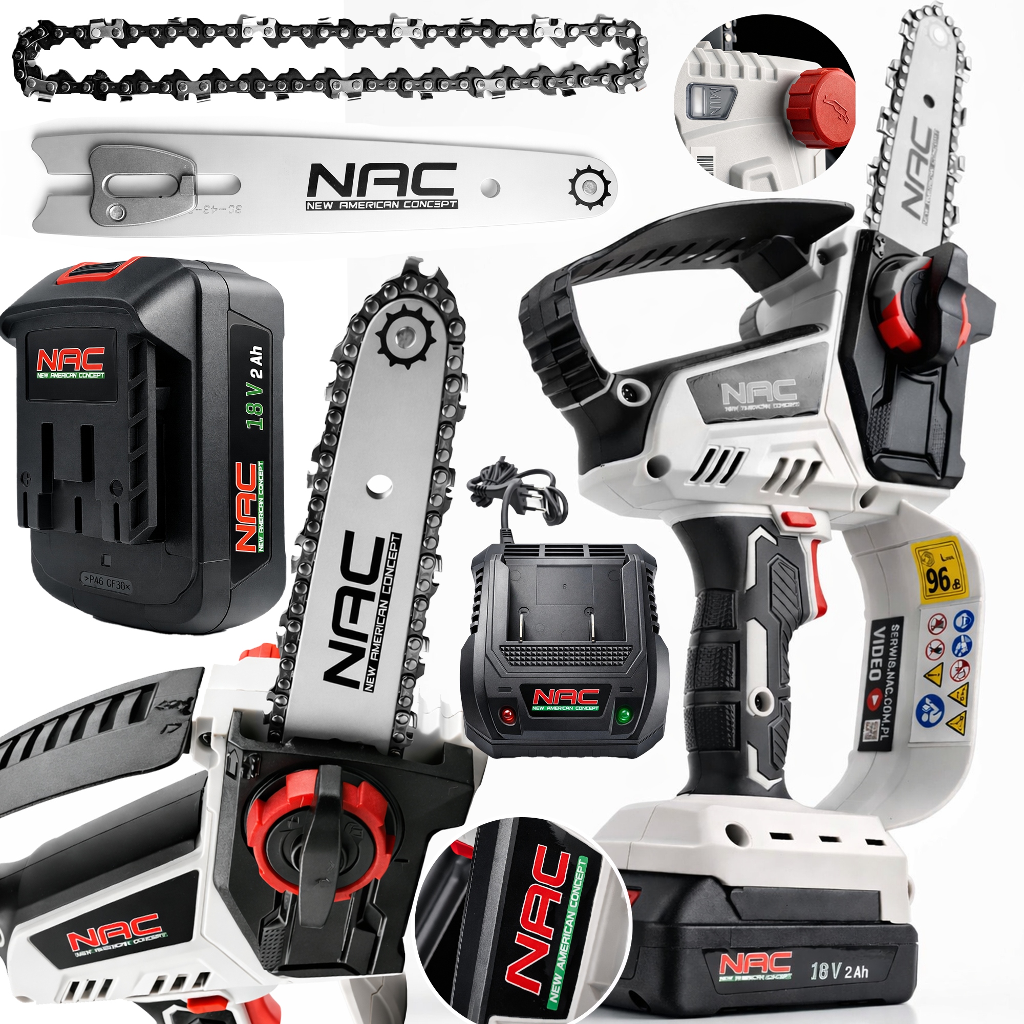 Nac Akumulatorowa Pilarka Piła Łańcuchowa Drewna Prowadnica Łańcuch 18V 2AH - 177 zł (-29%) | BudoPromki