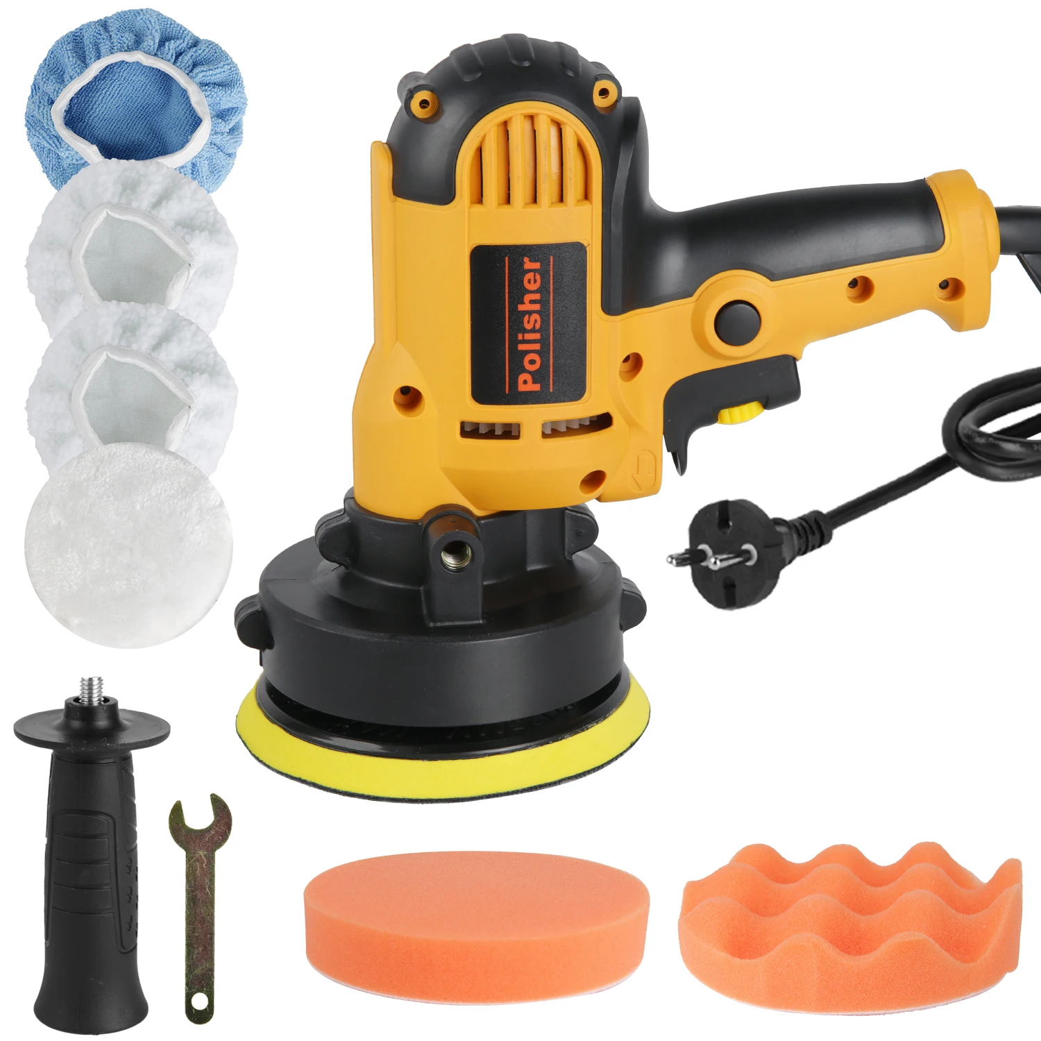 Polerka samochodowa 700W, elektryczna maszyna do woskowania i szlifowania z regulacją prędkości, akcesoria do woskowania, elektronarzędzia, narzędzia do obróbki drewna, narzędzia i akcesoria. Yellow