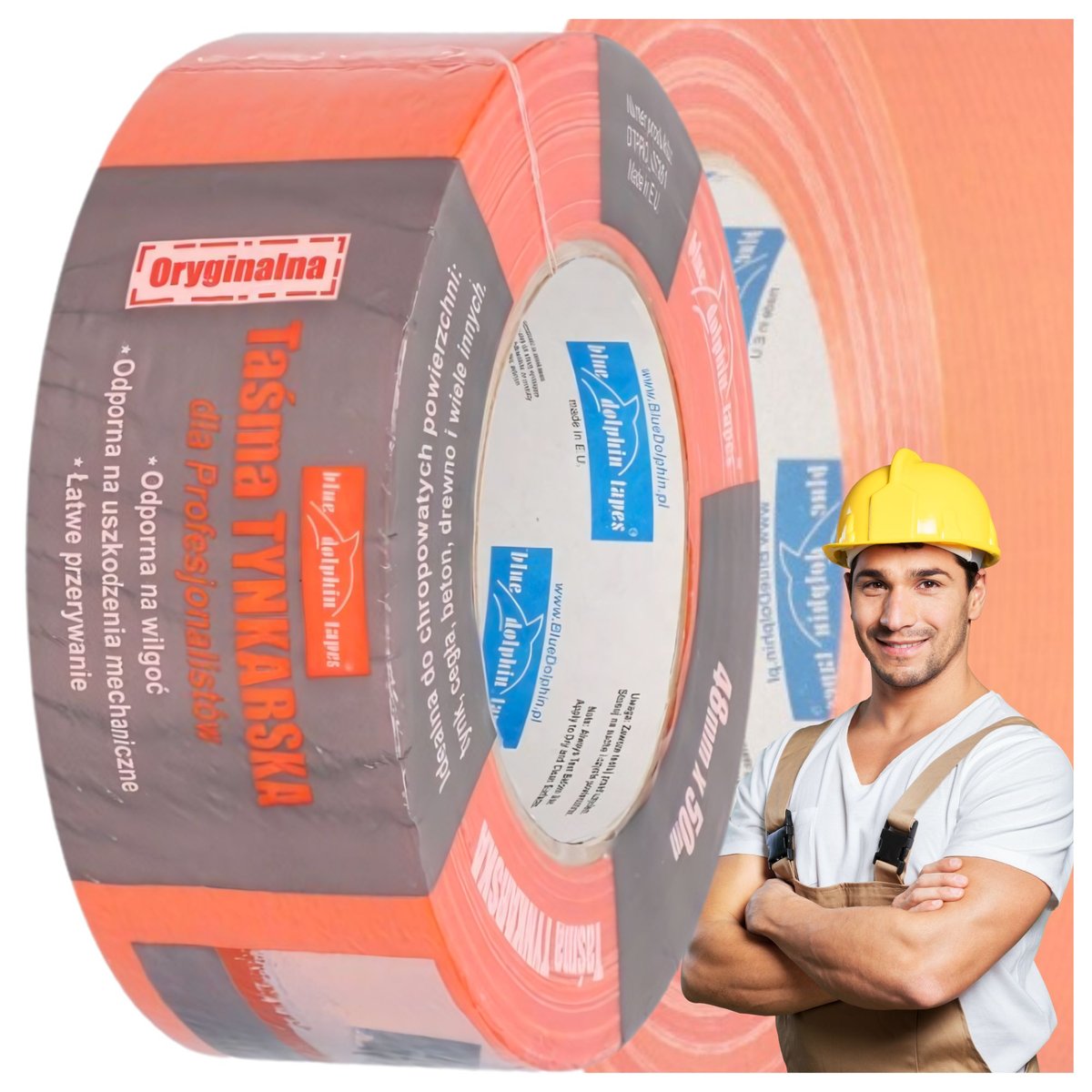 Taśma Tynkarska Malarska Pomarańczowa Blue Dolphin do Elewacji 48 mm x 50 m - 24,80 zł (-27%) | BudoPromki