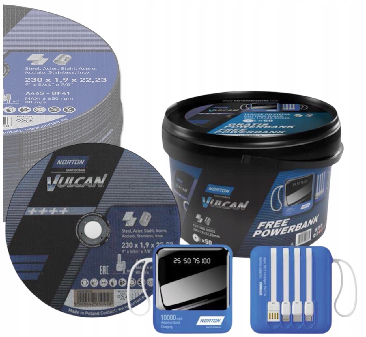 Tarcza do cięcia metalu Norton Vulcan 230x1,9 mm Inox 50 szt. Powerbank - 363 zł (-41%) | BudoPromki