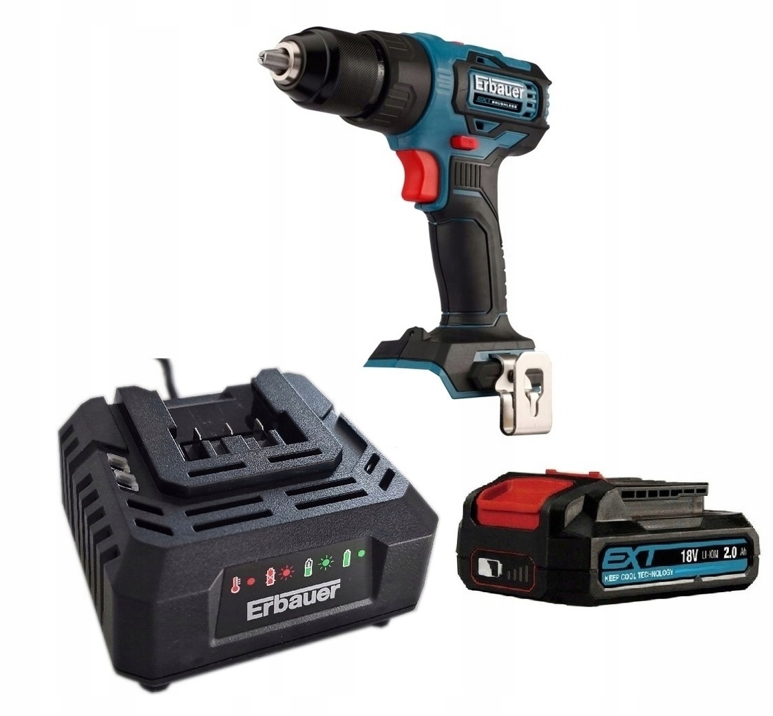 Wkrętarka udarowa Bezszczotkowa Erbauer 18 V Akumulatorowa 2 ah Ładowarka